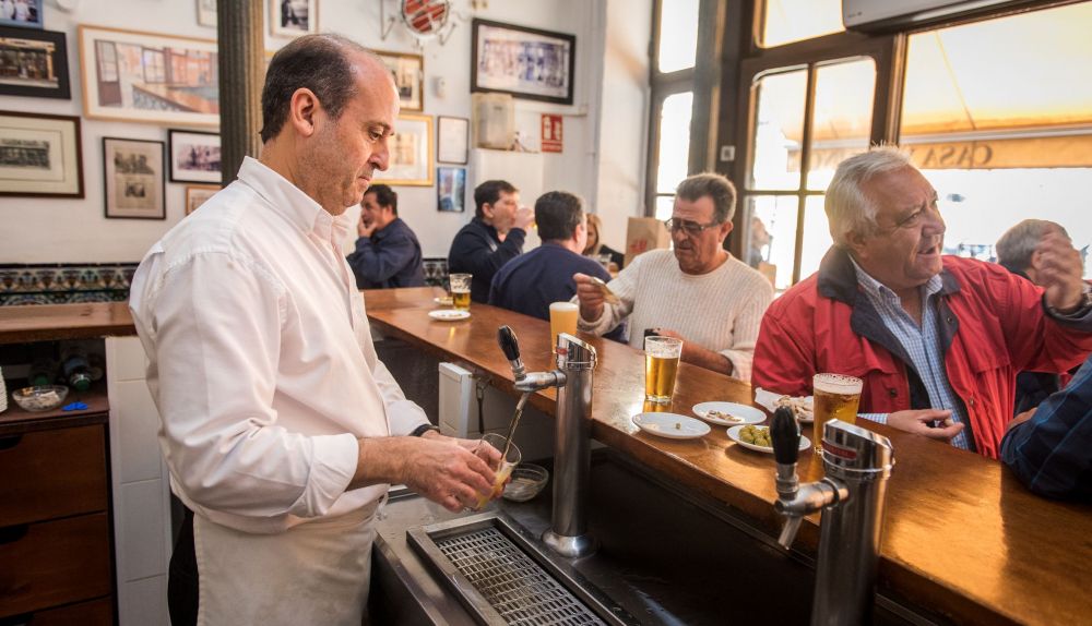 Si hablamos de Sevilla y de sus bares, es imposible no pensar en Casa Vizcaíno. El histórico establecimiento de la calle Feria sigue siendo una referencia en el barrio. Pese a la turistificación de la zona, este local mantiene la idiosincrasia sevillana y, por ello, mantiene a los parroquianos clásicos durante la semana para tomarse la primera cerveza del día. El lugar está a punto de cumplir los 90 años.