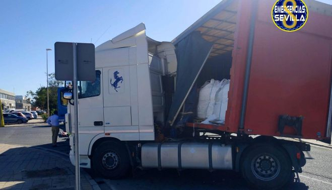 Dos camioneros han tenido que ser hospitalizados tras la colisión que han sufrido con sus vehículos en Sevilla en la confluencia de las calles Pino Siberia y Encuadernación.