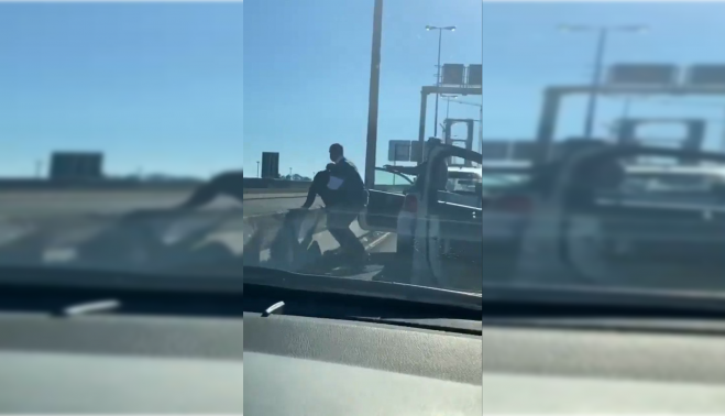 Tras uno de los empujones hay un puñetazo que deja noqueado a uno de los participantes en la trifulca. Esto hizo que otro conductor tuviera que intervenir en la pelea para intentar separarlos. Mientras tanto, el conflicto provocó retenciones en el tráfico, algo que desesperó al resto de conductores. Uno de ellos decidió grabar la escena.