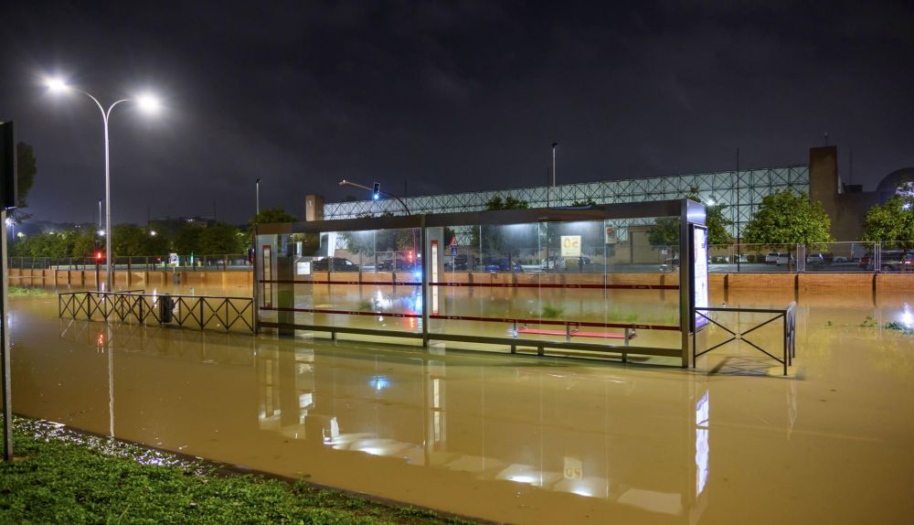Horas antes, esta vía había sido cortada en sentido Avenida de las Ciencias debido a la acumulación de agua en la calzada procedente del alcantarillado. La situación se produjo como consecuencia de la crecida de los cauces cercanos, lo que generó problemas en distintos puntos del entorno.