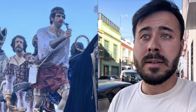 El escultor Mosquero Nabarro ha difundido un vídeo en redes sociales en el que recoge su reacción al ver procesionar varias de sus obras en un paso de la Semana Santa de Sevilla. La grabación se sitúa junto al recorrido de la hermandad de Hermandad de Las Lágrimas de Pío XII, donde este año se ha incorporado una nueva talla de su autoría.