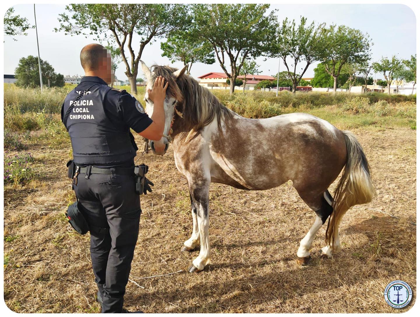 Todo ocurrió en las inmediaciones de la carretera del Copero en Sevilla donde la presencia de una yegua en mitad de la calzada alertó a los agentes de la Policía Local que se encontraban de paso.