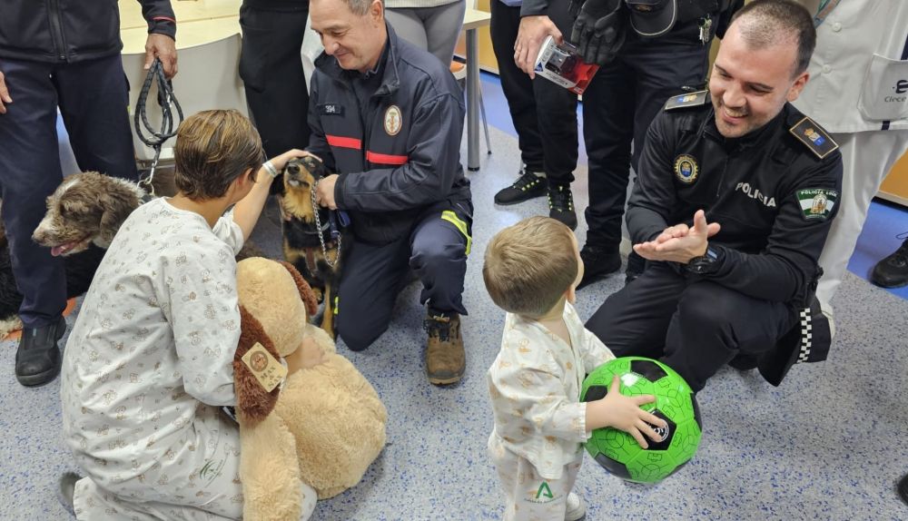 Los agentes han visitado espacios en los que están pequeños y mayores. En el ámbito pediátrico, han entregado juguetes al son de villancicos en el Aula de Pediatría, consultas y urgencias pediátricas. También han alegrado la estancia de los pacientes de la Unidad de Día de Onco-Hematología a sones de canciones navideñas y sevillanas, además de la planta de Maternidad.