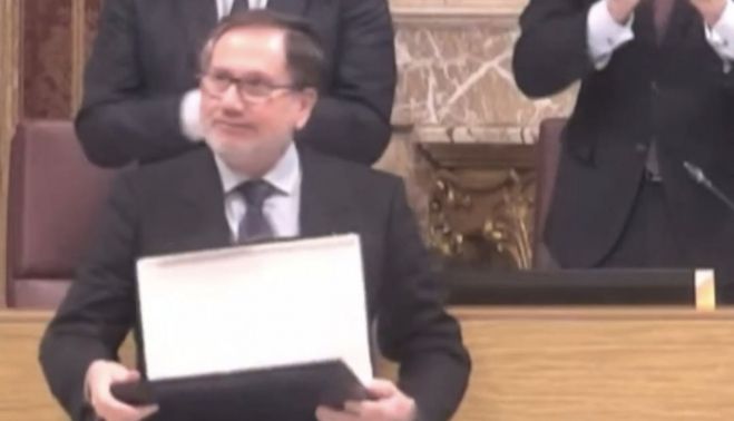 Con una ovación y todos los concejales en pie ha dicho adiós al Ayuntamiento de Sevilla el trabajador Manuel Vicente Durán. El histórico empleado del Consistorio hispalense se ha jubilado este 19 de diciembre y lo ha hecho con todos los honores y el cariño de los presentes en el salón de plenos del edificio de la Plaza San Francisco.