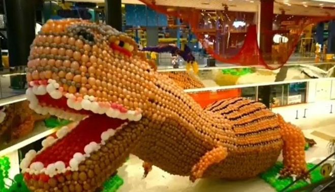 La compañía sevillana Globusclown ha obtenido el récord Guinness, por tercera vez, al realizar la mayor escultura de globos del mundo, con forma de dinosaurio, como elemento decorativo para la reapertura del centro comercial Metropol Istambul, que ha estado seis meses cerrado por la pandemia. El equipo de Pablo Muñoz, artista sevillano responsable de la empresa, ha construido este dinosaurio con 28.154 globos biodegradables sin estructura, dentro de una instalación compuesta por más de 150.000 globos.