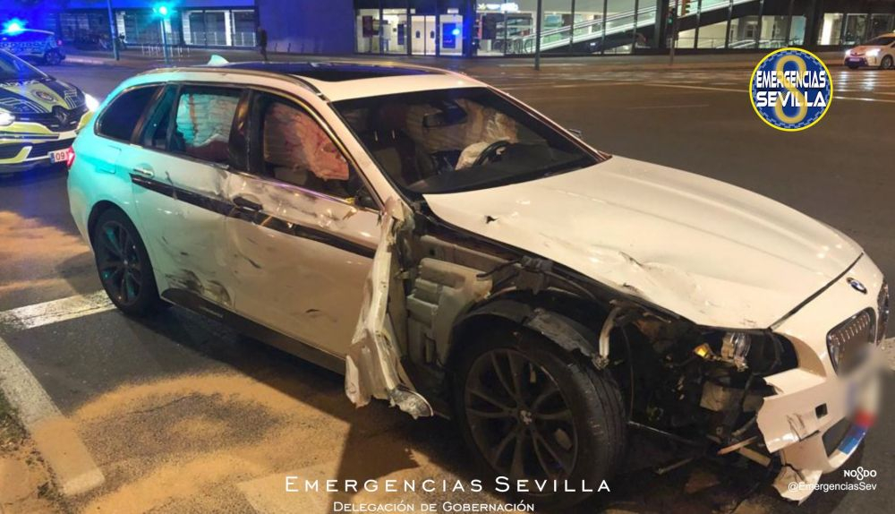 Agentes de la Policía Local de Sevilla están investigando las circunstancias que rodean a este aparatoso siniestro vial. Efectivos de la Policía Local y de Emergencias Sanitarias 061 han intervenido en el accidente.