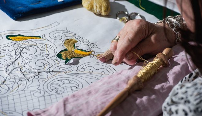 La responsable de este negocio reconoce que no es fácil hacerse cargo del legado. "Es muy duro porque no sólo es venir y trabajar. Hay muchísimo trasfondo en hablar con Hermandades y organizarlo todo", afirma, aspectos que van de la mano con el bordado pero que, a diferencia del trabajo manual, no se enseñan en casa. "Cuando empecé a bordar algunas de las cosas técnicas no sabía ni cómo se llamaban, pero vas aprendiendo con el tiempo y le vas dando forma".