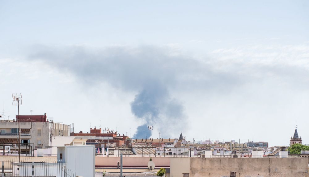 Una gran columna de humo se ha generado este mediodía en Sevilla a causa de un incendio visible desde todas las azoteas de la capital y de municipios de alrededor.