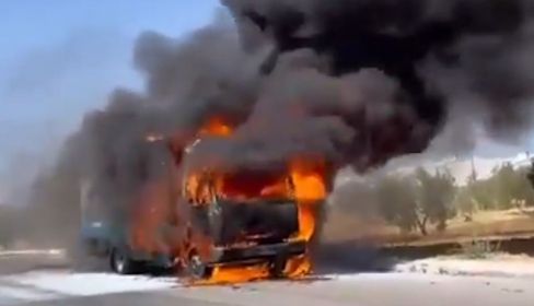 Vehículo de @danone_es ardiendo ahora en Los Olivares, Sevilla pic.twitter.com/VIbd2qcpNu