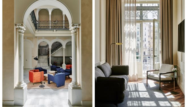 Enfrente de la fachada plateresca del Ayuntamiento de Sevilla, Nobu Hotel y Restaurante se sitúa en los números 11 y 12 de la plaza de San Francisco. Ambos edificios nacieron como residencias familiares de una burguesía floreciente en la segunda década del siglo XX. El primero, en 1914, lo firma Juan de Talavera Heredia (1880 – 1960) y, el segundo, construido dos años antes por José Espiau y Muñoz (1879 – 1938). Los dos arquitectos coquetearon en sus inicios con el estilo en boga en la época, el modernismo, pero el uno y el otro finalmente se apuntaron al regionalismo.
