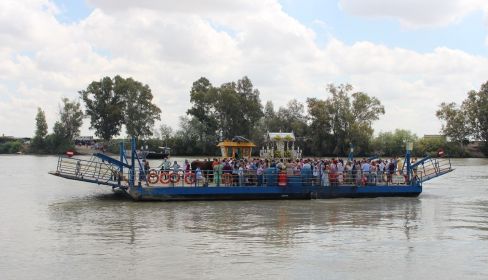 Un año más, Coria del Río, en la provincia de Sevilla, recibe a los peregrinos y peregrinas que se dirigen a la aldea del Rocío para cruzar el río Guadalquivir en la barcaza del municipio, como sucede desde hace más de 50 años, una estampa única que reúne a centenares de personas en una operación similar a la que se da en Bajo de Guía en Sanlúcar. La particularidad que se vive en esta población es que todas las comitivas rocieras se adentran en el casco antiguo de Coria y hacen una presentación en la iglesia de Nuestra Señora de la Estrella.