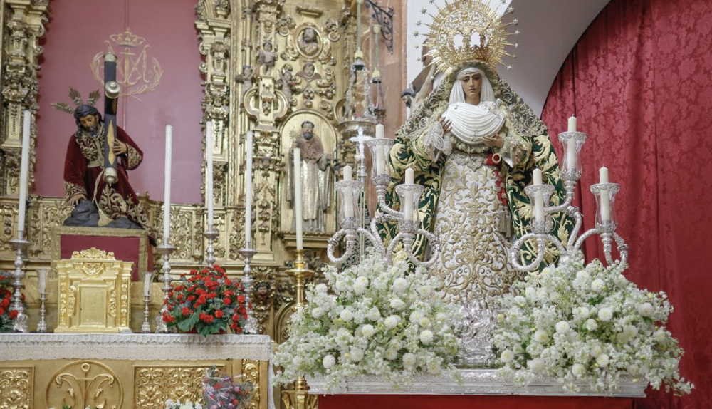 Para esta ocasión, la Virgen estrenará un manto bordado en terciopelo verde, obra del taller de Pepi Maya con diseño de Francisco Javier Sánchez de los Reyes. El exorno floral estará compuesto por delphiniums, dalias, alstroemerias, archemilla, pitosporum, álamo blanco e hiedra, un conjunto que, según la hermandad, “ensalza todas las virtudes de la Esperanza como Reina, Madre y Capitana de nuestras vidas”.