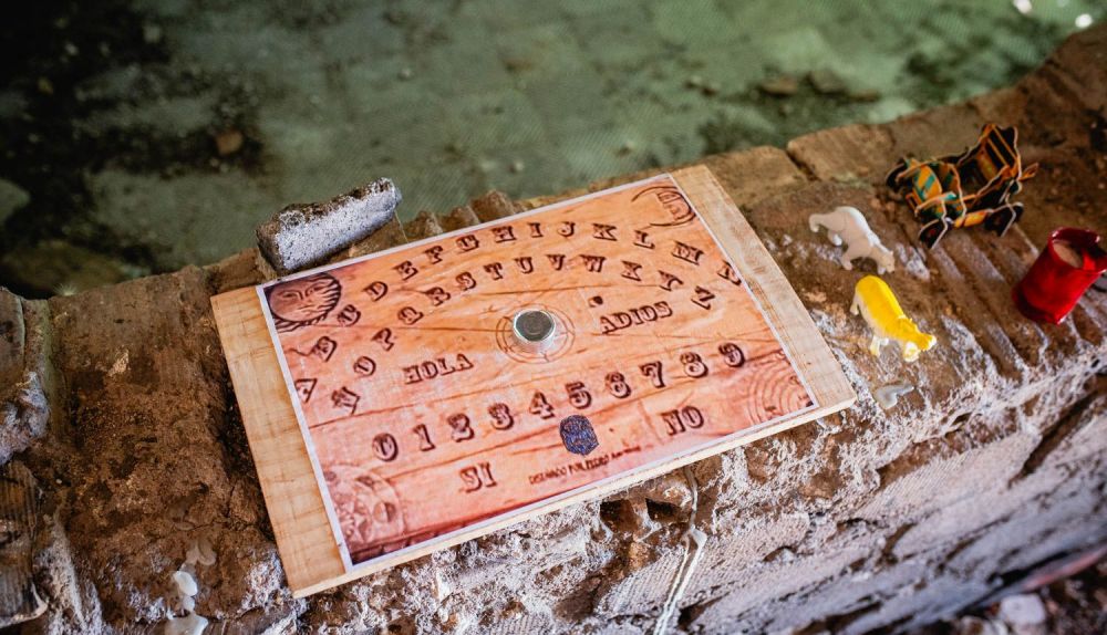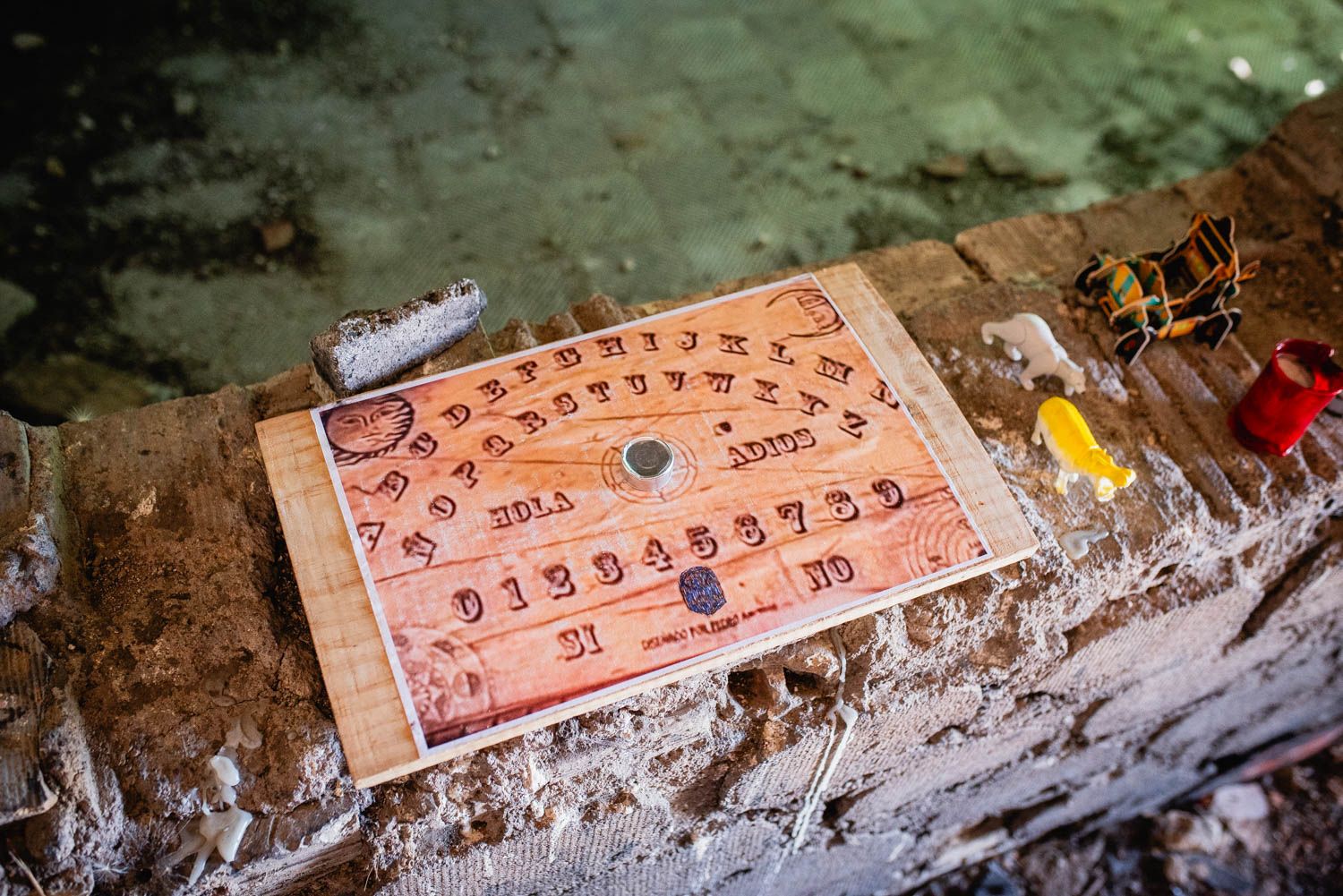 Hoy, la estación parece un escenario para el programa Cuarto Milenio. Nada más entrar, además de latas y botellas -con uso reciente, se nota-, solo se ve tierra negra, quizás fruto de algún incendio, y en lo que pudo ser un mostrador de venta de billetes, una ouija.