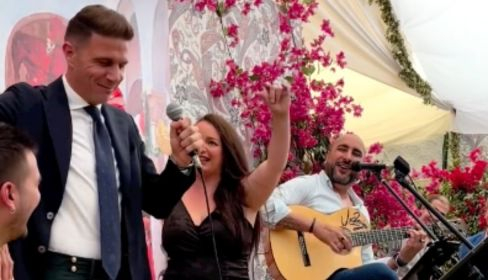 Una letra por favor le pedía la cantante del grupo que estaba actuando en la caseta y el veterano futbolista, que hace unos días anunciaba su despedida de los terrenos de juego, cogió el micrófono y se animó con el "Ali, Ali se la llevó...".