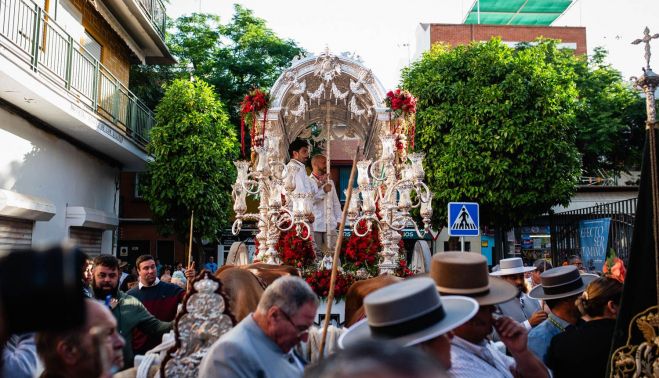 Es la última en volver a casa. Lo hará a partir de las 20 horas a través de la Avenida de la Expo 92, llegando al viejo arrabal a través de la Glorieta José Moya Sanabria para derivar en la Ronda de Triana. Allí visitarán los rocieros trianeros la Basílica del Cachorro.