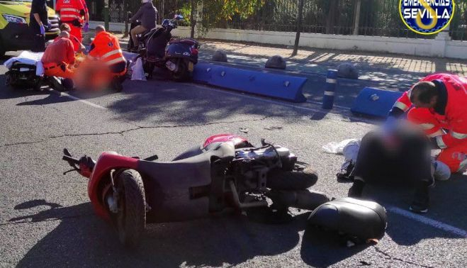 La Policía Local de Sevilla instruye diligencias después de que una mujer haya sido evacuada a un centro hospitalario sevillano después de colisionar con el ciclomotor en el que circulaba contra otro que se encontraba detenido en un semáforo en el Paseo de las Delicias.