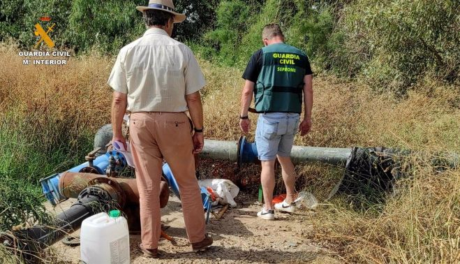 Agentes del Servicio de Protección de la Naturaleza (Seprona) de la Guardia Civil de Sevilla han detenido a dos guardas fluviales de la Confederación Hidrográfica del Guadalquivir (CHG) acusados de permitir la extracción de aguas en el Guadalquivir, "circunstancia agravada por el periodo de sequía", e investigan a seis empresarios, la mayoría del sector del cítrico, que desarrollan sus actividades en la comarca de La Vega.