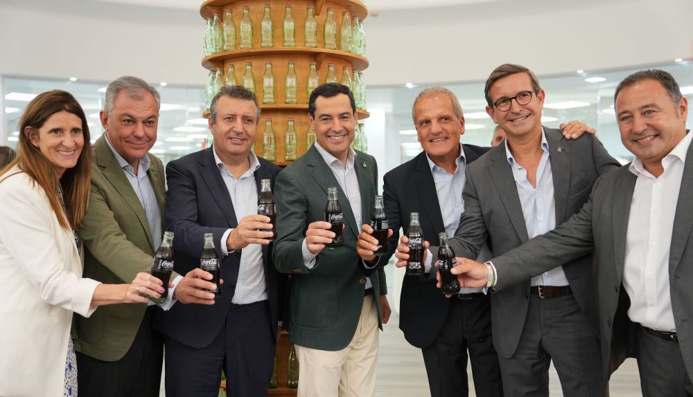 Sevilla es de cerveza, de Pino Montano a La Buhaira, y de Écija a El Cuervo. Pero también, de botellines. Que pueden ser de Coca-Cola. O cocacolita. Este jueves, una visita a la planta del manjar negro y símbolo americano, ha reunido a Juanma Moreno, presidente de la Junta; Javier Fernández de los Ríos, presidente de Diputación; y José Luis Sanz, alcalde de Sevilla.