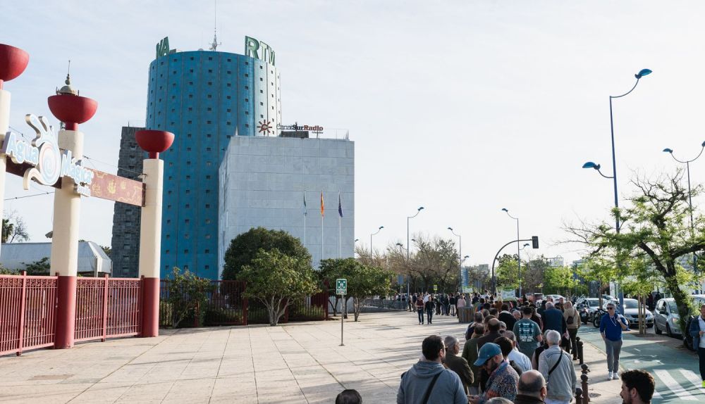De nuevo, las largas colas han protagonizado la escena en la Isla de la Cartuja, donde se sitúa la sede de Canal Sur Radio. Varias personas aguardaban varias horas antes de que comenzara el reparto a las 8 de la mañana. Poco después, la fila daba la vuelta a Isla Mágica, algo que ya es común y que deja una gran imagen, a pesar de que el avance suele ser relativamente fluido.