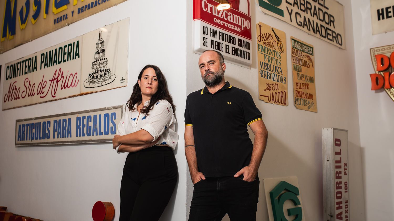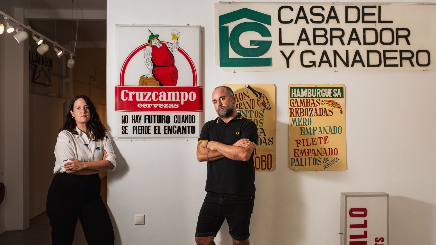 Las obras en Sevilla son el día a día. La ciudad se mueve. No está claro en qué dirección, pero moverse, se mueve. Hay actividad, nuevos comercios, aperturas, reconversiones de espacios... En muchos casos, para ser viviendas turísticas, pero hay actividad económica, desde luego. Aunque, en un término municipal donde apenas quedan metros cuadrados disponibles, a falta de territorio virgen, donde nace algo, quizás, antes había muerto lo viejo. Así se transforma una ciudad, si es que Sevilla alguna vez ha dejado de transformarse. Y en lo viejo y en su estética se han fijado la arquitecta Fabiola Muñoz y el diseñador gráfico Ricardo Barquín. Ambos comisionan la exposición 'No hay futuro cuando se pierde el encanto: patrimonio gráfico sevillano', que se estrenará en el LAB, calle Peral 57, el próximo jueves 10 de octubre, y permanecerá abierta hasta el 3 de noviembre.