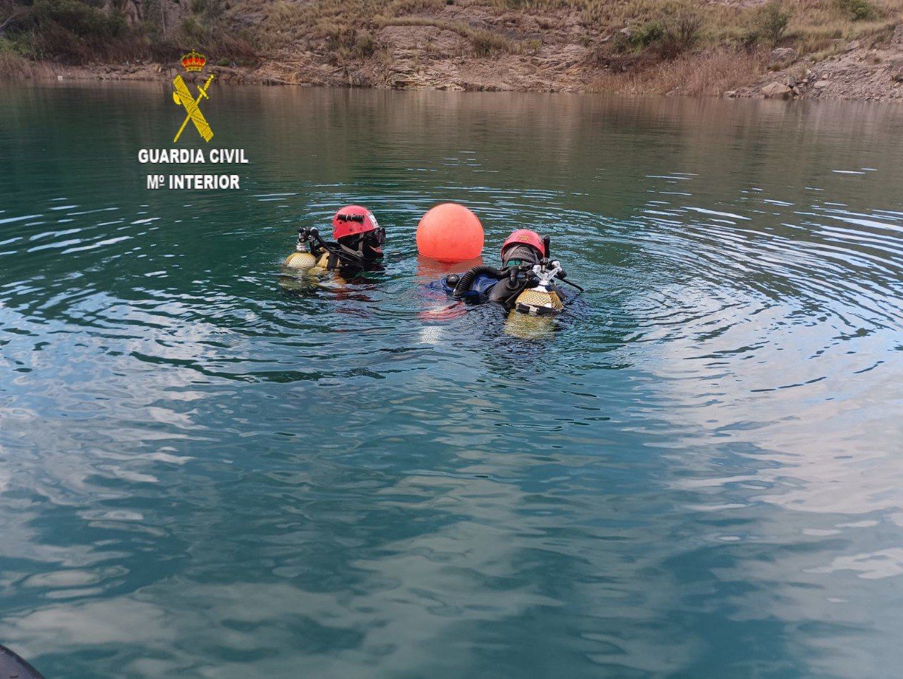 Otros dos agentes realizaron otra inmersión con la finalidad de desenganchar el equipo del fondo, usando cabo de enganche unido a la embarcación oficial de Guardia Civil en la superficie. Así, consiguieron elevar al exterior el cuerpo sin vida de la persona desaparecida, y su equipo.