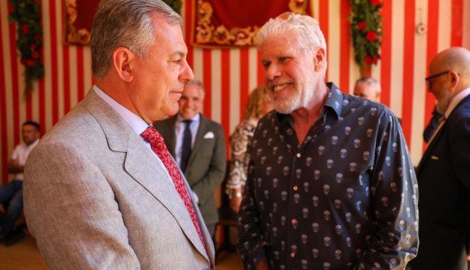 "El conocido actor norteamericano Ron Perlman está estos días en la Feria de Sevilla y lo hemos recibido en la caseta municipal. Durante su rodaje en España no ha dudado en visitar Sevilla. ¡Gracias por acompañarnos en estos días tan especiales!", le ha dicho el alcalde.