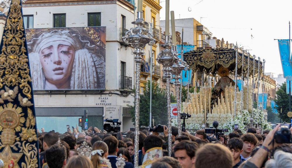 Miles de personas se han congregado en las calles empuñando paraguas, pero sin abrirlos. De hecho, mala cosa es hacerlo, dicen, cuando la cofradía está en la calle.