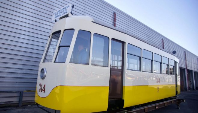 El histórico tranvía 314, un vagón original de los últimos que circularon por Sevilla, volverá a la Plaza San Martín de Porres de Triana tras una profunda restauración que le ha devuelto su mejor aspecto, según ha informado el Ayuntamiento de Sevilla.