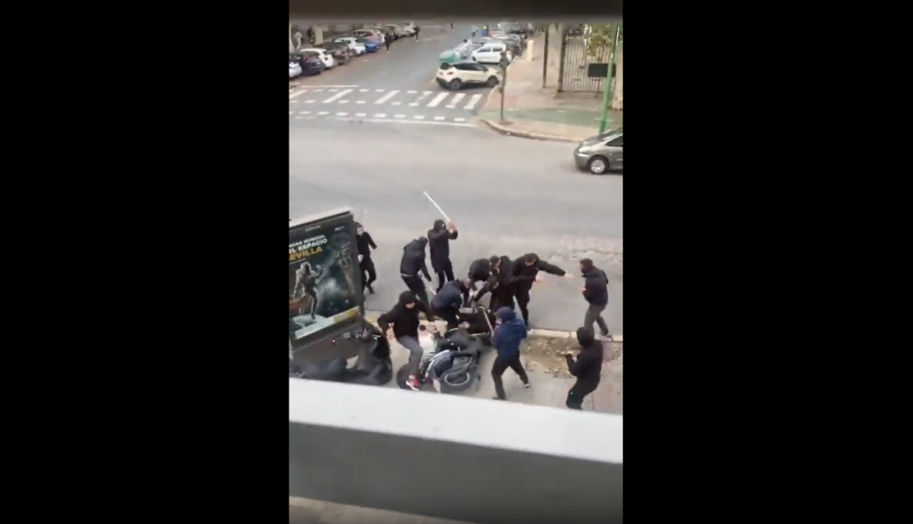 Un vídeo muestra la brutal paliza que ha recibido un hombre en la avenida de Reina Mercedes en la mañana de este domingo antes del encuentro que enfrentaba al Betis con el Osasuna. En un vídeo grabado por vecinos muy cerca de los hechos puede verse cómo un grupo ataca con palos a una persona junto a una moto tirada en el suelo.