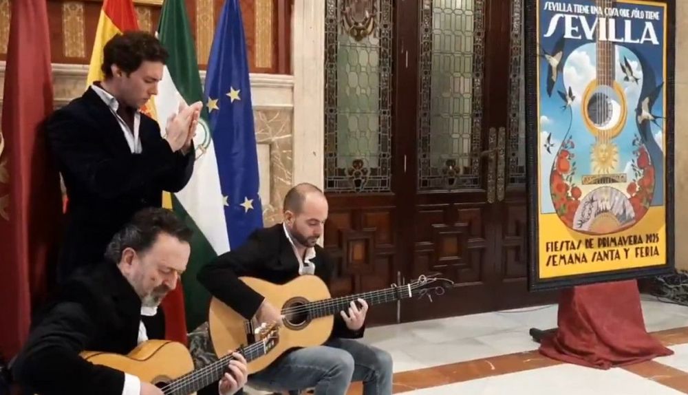 Sanz ha señalado que “el taller de Daroal es un emblema de la ciudad de Sevilla, un dúo de artistas que vuelve a demostrar su maestría con los pinceles en este cartel que quedará para la historia de la ciudad. Gracias por regalarnos esta maravillosa obra que recoge a la perfección el sentir de Sevilla en estos meses, por unir en estos trazos y colores la primavera de una ciudad que amamos por encima de todas las cosas. Un cartel que, como les decía antes, se ve pero también se oye. Un cartel que enciende los altavoces de nuestra memoria y nuestros recuerdos. Solo con verlo resuenan en nuestros cerebros los acordes de esta ‘Sevilla tiene una cosa, que solo tiene Sevilla’. Una composición coral, como este cartel, que aunó el talento de Manuel Pareja-Obregón, Rafael de León, Manuel López Quiroga o Gerardo del Valle en su composición, y que se vio perfeccionada cada vez que un gran artista, como pudo ser Rocío Jurado o Los Marismeños, la cantaban”.
