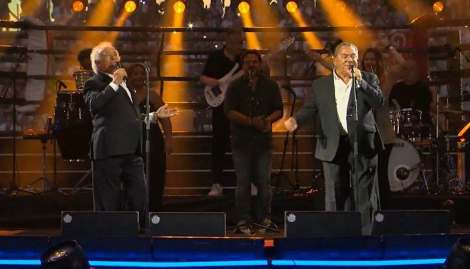Con 77 y 78 años, el mítico dúo demostró que la edad es solo un número. Enchaquetados y con una energía envidiable, consiguieron que incluso las generaciones más jóvenes se levantaran de sus asientos. Himnos como Sevilla tiene un color especial y, por supuesto, La Macarena, pusieron al público en pie.