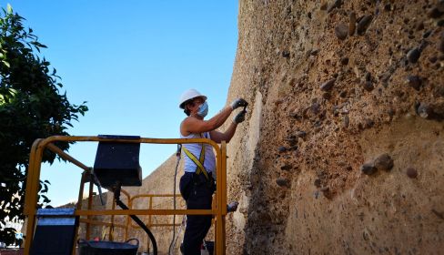 Para finalizar se aplica un producto consolidante para afianzar la estructura en toda la cara interior de la muralla, a fin de que se conserve lo mejor posible, además de la hidrofugación, para proteger los paramentos de la humedad exterior.