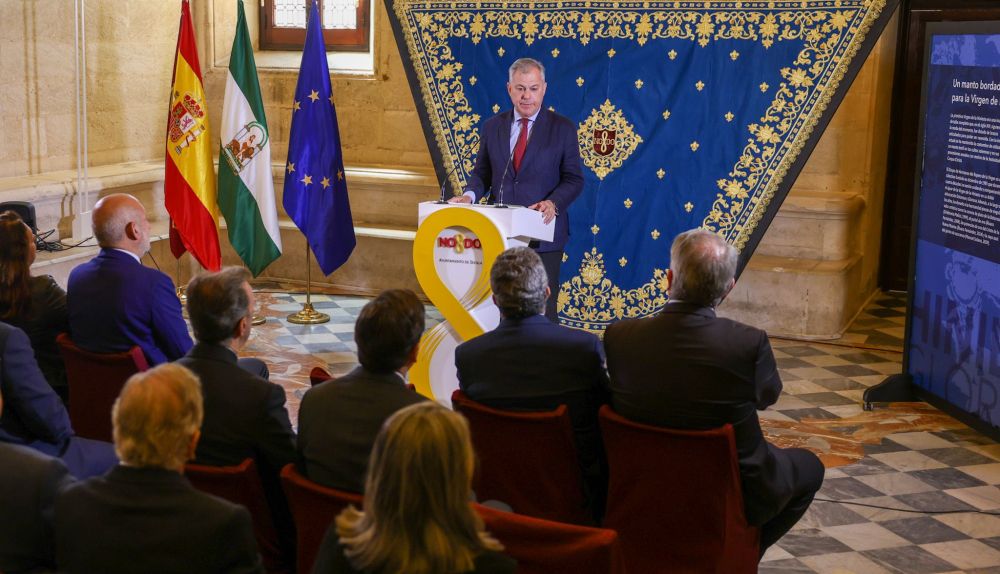 La exposición presenta al público dos grandes estrenos: el baldaquino de plata realizado por Orfebrería Ramos con diseño de Javier Sánchez de los Reyes y el manto bordado en oro sobre terciopelo por Manuel Solano con diseño de Gonzalo Navarro que serán estrenados en la misa estacional en la catedral y la procesión extraordinaria el próximo 26 de mayo.