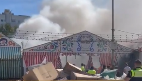 Arde durante el montaje la Caseta del Distrito Este (caseta pública).