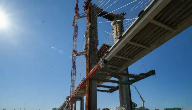 Con este hito, único en el mundo, iniciamos la ampliación del tablero y la colocación de los nuevos tirantes .