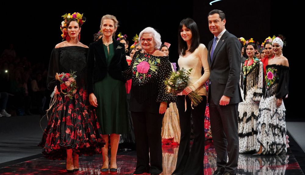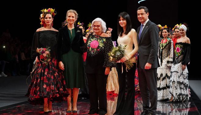 Moreno ha asistido en Sevilla a la inauguración del Salón Internacional de la Moda Flamenca (SIMOF) cuya madrina ha sido la Infanta Elena de Borbón, acto que ha incluido la entrega de los Premios Flamenco en la Piel.