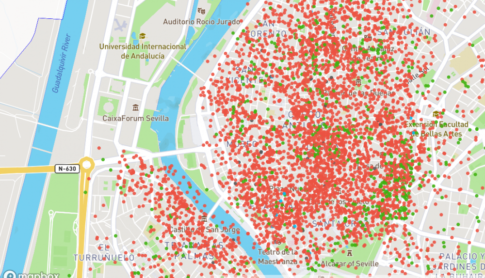 Insideairbnb.com es un portal que señala con colores el número de alojamientos de este tipo que existen en cada ciudad. Además, hace la distinción entre apartamentos completos o habitaciones. El único problema es que tan sólo está disponible para las grandes ciudades. El caso de Sevilla queda muy claro. Su centro está completamente coloreado de rojo. Y es que son 6.576 los apartamentos turísticos que hay dados de alta en la ciudad. De ellos, alrededor de 5.500 son pisos completos. Algunas ciudades, como Cádiz o Barcelona, ya han intentado regular este tipo de viviendas, sin embargo, de momento, no parece que el éxito sea rotundo.