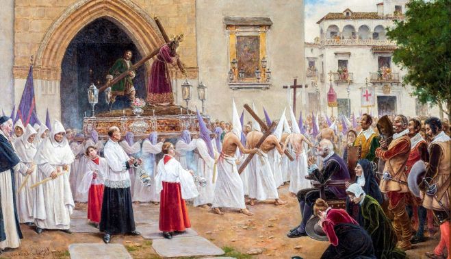 Para esta edición, se ha seleccionado la representación pictórica ‘Martínez Montañés contemplando la salida de Jesús de la Pasión’, un óleo sobre lienzo realizado por el sevillano Joaquín Turina y Areal (1847-1903) hacia el año 1900. La obra, de notable calidad y sensibilidad artística, pertenece a la Archicofradía Sacramental de Pasión, que la conserva en su sala capitular y que ha autorizado su exhibición temporal.