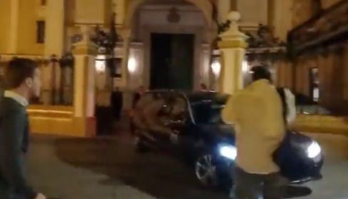 En el interior del templo se están llevando a cabo las diferentes maniobras sobre las sepulturas de Queipo de Llano y Bohórquez. También un coche fúnebre ha llegado al exterior del templo.
