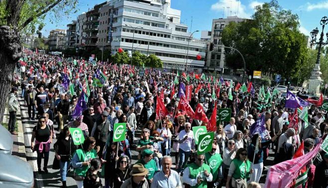 Miles de personas se han manifestado este domingo en Sevilla para protestar contra las que consideran "nefastas políticas sanitarias" de la Junta de Andalucía. La movilización, convocada por sindicatos y colectivos ciudadanos, arrancó a las 11:00 de la mañana y recorre las principales calles de la capital andaluza con destino al Palacio de San Telmo, sede del Gobierno autonómico.