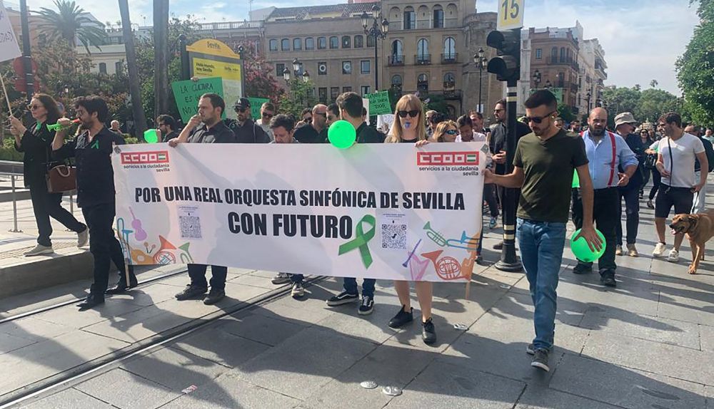 Una manifestación en apoyo de la Real Orquesta Sinfónica de Sevilla (ROSS) ha recorrido las calles del centro de la capital hispalense. En una muestra de solidaridad y compromiso, simpatizantes y músicos se unieron para solicitar a las Administraciones el inicio de un nuevo convenio colectivo que mejore las condiciones de la ROSS.