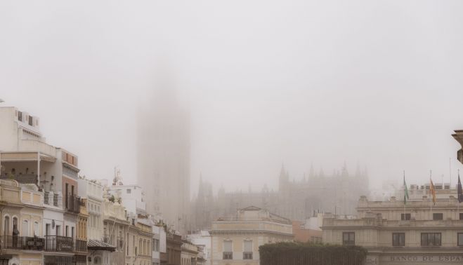 Sevilla y su área metropolitana han amanecido este viernes sin apenas visibilidad. Una densa niebla ha estado presente en el despertar de los sevillanos y la situación ha provocado algunos inconvenientes, especialmente en el Aeropuerto de San Pablo, donde la actividad aérea ha tenido que ser modificada por las dificultades que había en las primeras horas del día en las pistas del aeródromo.