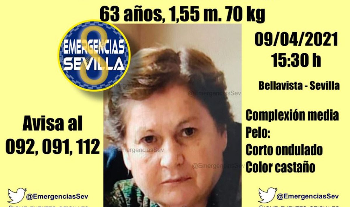 Por último, el Ayuntamiento ha pedido a cualquier personas que tenga información o que la haya visto desde el viernes que contacte con la Policía Nacional o Local. Por ello, ha facilitado el teléfono 954760050 y ha rogado que se transmitan informaciones "fiables" con el fin de "no colapsar las líneas y poder atender a cualquier dato de interés".