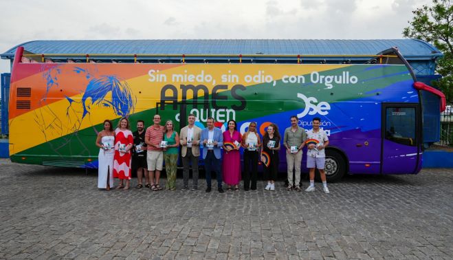Javier Fernández, presidente de la Diputación de Sevilla, la ha presentado a bordo del autobús tematizado con el que la institución participará el próximo 28 de junio en la marcha oficial del Día Internacional del Orgullo LGTBI, que recorrerá las calles del centro de la capital andaluza.