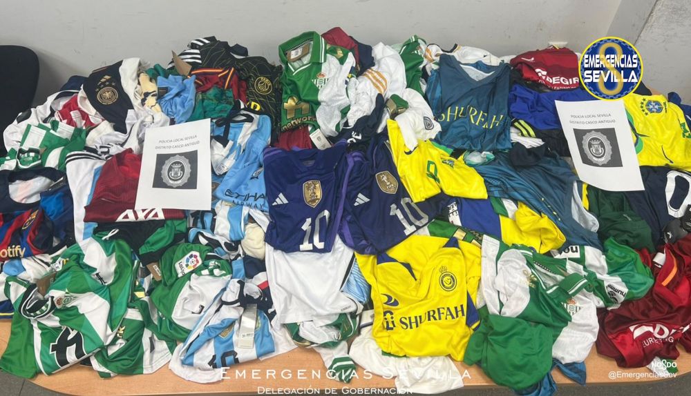 Un total de 180 prendas deportivas han sido intervenidas por la Policía Local en la zona centro de Sevilla. Las mismas estaban destinadas a la venta ambulante ilegal.