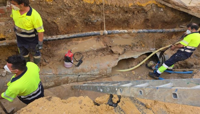La tubería que se ha roto esta noche es de 600 milímetros y por ella discurre el agua “por gravedad”. El agua desbordada ha afectado a varias viviendas, dos locales y un garaje comunitario. Hasta el lugar de los hechos no solo han acudido efectivos de Aguas del Huesna, sino también la Policía Local y los bomberos, que han actuado en el interior de varios hogares para achicar agua de las habitaciones. Esta mañana, el Ayuntamiento anunció que el arreglo podría tardar entre 12 y 14 horas.