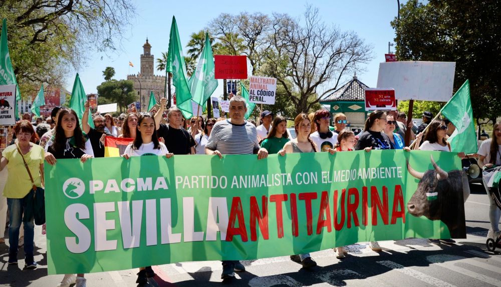 Unas 2.000 personas se han manifestado este domingo en Sevilla en contra de la tauromaquia, según cifras ofrecidas por el Partido Animalista con el Medio Ambiente (Pacma). La protesta, que recorrió las principales calles del centro de la ciudad, concluyó frente a la plaza de toros de la Maestranza, coincidiendo con la temporada taurina en la capital andaluza.