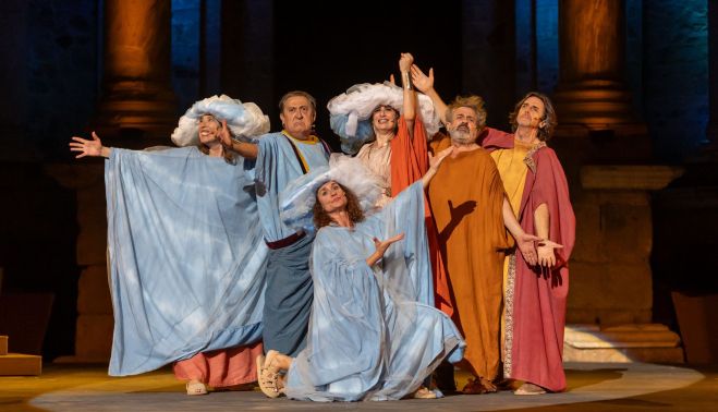 Este miércoles 20 y jueves 21 de diciembre, el elenco encabezado por Mariano Peña, Pepe Viyuela, Cristina Almazán y Manuel Monteagudo, traerá al Cartuja Center (21 horas) la adaptación al presente de ‘Las Nubes’, estrenada en el pasado Festival de Teatro de Mérida con éxito de público y crítica y que llega por primera vez a Sevilla tras una intensa gira por todo el país.