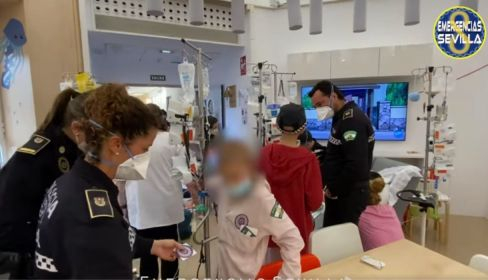 Tras dos años de ausencia por culpa de la pandemia, la Policía Local de Sevilla, a través de la Escuela del Cuerpo, ha visita el Hospital Virgen del Rocío para patrullar contra el cáncer, cambiando la rutina habitual de los niños enfermos en dicho centro hospitalario.