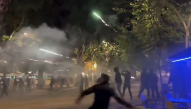 Durante los disturbios se han podido ver bengalas, botellas, porras, y se han vivido muchos momentos de tensión por el intercambio de objetos lanzados entre un grupo y otro, como sillas o vasos.